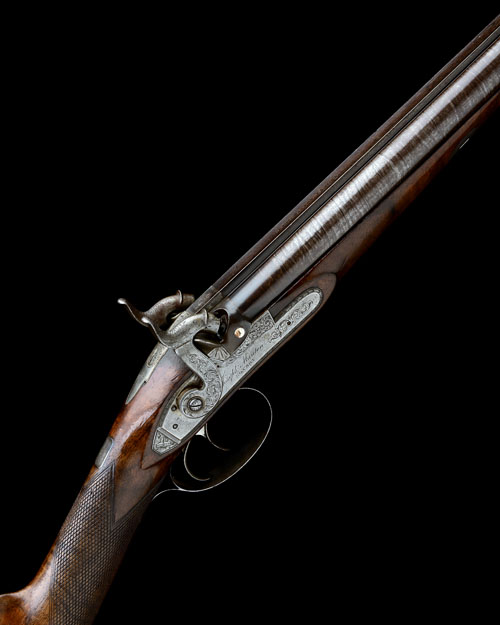 A CASED 20-BORE PERCUSSION DOUBLE-BARRELLED SPORTING GUN, serial no. 5429,