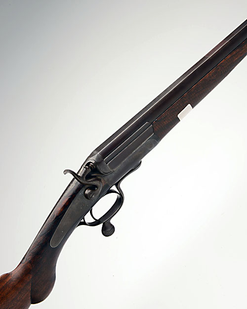 HOLLAND & HOLLAND 28-BORE SINGLE-BARRELLED ROTARY-UNDERLEVER HAMMERGUN, serial no. 11389, converted from a rook rifle, 26 1/2in. nitro reproved barrel with matt sighting flat (sight removed with dovetailed insert), barrel engraved 'HOLLAND & HOLLAND. 98 NEW BOND STREET. LONDON. WINNERS OF ALL THE "FIELD" RIFLE TRIALS. LONDON. 1883', 2 1/2in. chamber, bored approx. 1/4 choke, carved percussion fence, rebounding back-action lock, bouquet and scroll engraving, 13in. semi-pistolgrip stock