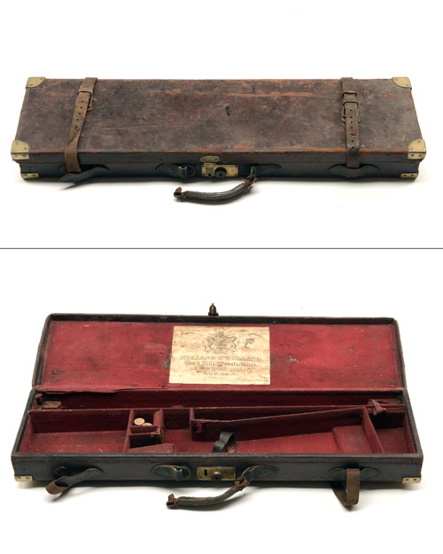 HOLLAND & HOLLAND A BRASS-CORNERED SINGLE LEATHER HAMMERGUN CASE,
