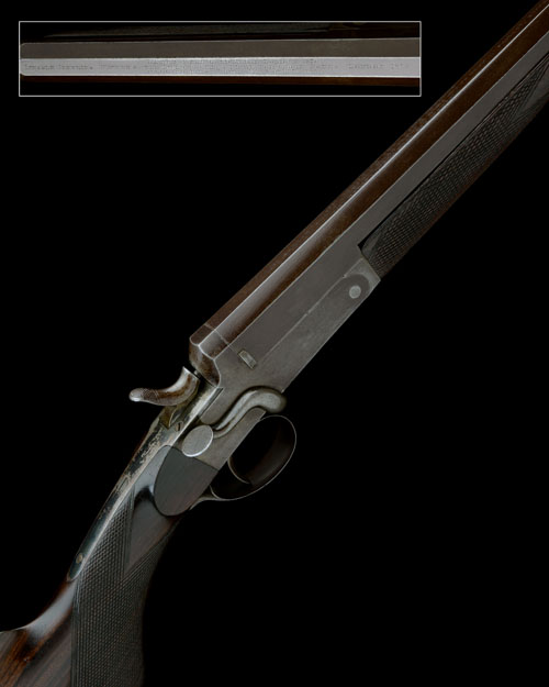 30 3/8in. nitro reproved octagonal to round barrel, top flat engraved ''LINCOLN JEFFRIES WINNER OF THE FIELD 20 GUINEA PRIZE FOR CHOKE BORE. LONDON 1879. WINNER OF THE GOLD MEDALLION. LONDON 1870. AWARDED FIRST PRIZE. MELBOURNE 1889', 2 1/2in. chamber, bored approx. true cyl. choke, plain action retaining slight traces of finish, 14 1/2in. semi-pistolgrip stock including steel buttplate, repair at toe, weight 4lb. 8oz.