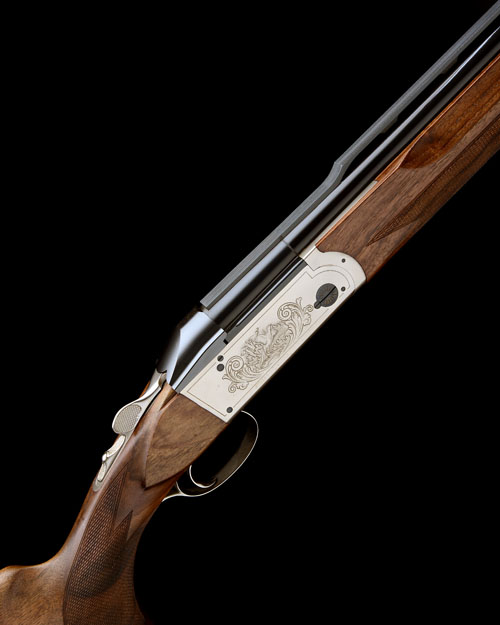 30in. nitro barrels with stepped tapered matt top-rib with intermediate bead sight, no mid-rib, 2 3/4in. chambers, bored approx. 3/4 choke in both, hold-open toplever, non-moving safety, triggerguard mounted barrel selector switch, satin finish action with scroll engraving and hound and pheasant, 14 1/2in. figured pistolgrip stock with monte carlo comb, palm swell and including 1in. ventilated rubber recoil pad, weight 8lb. 10oz.