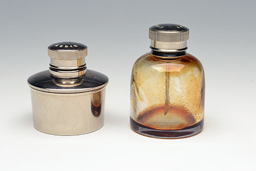 one glass with a 1 3/4in. diameter, the other nickel plated with a 1 /34in. diameter, both spuriously signed 'RIGBY. LONDON'