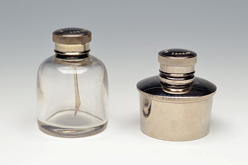 one glass with a 1 3/4in. diameter spuriously signed 'WATSON BROS. LONDON', the other nickel plated with a 1 3/4in. diameter spuriously signed 'J. PURDEY & SONS. LONDON'