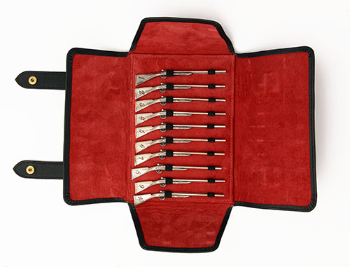 each approx. 4in. overall in .925 silver with Birmingham hall marks, peg no. on the cheek of each stock, housed in a suede-lined leather wallet