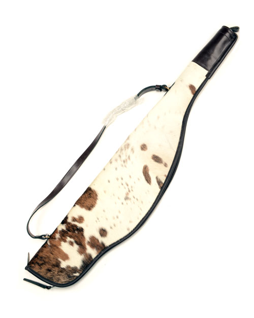 A HANDMADE GAME FUR AND LEATHER FLEECE-LINED SINGLE RIFLE SLIP,