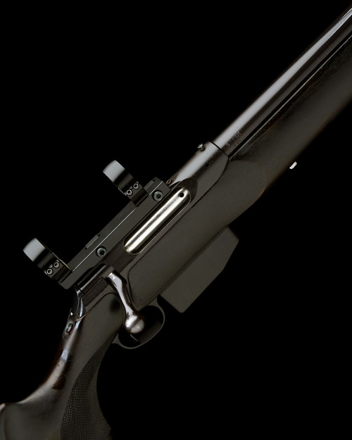 26 1/2in. unsighted heavy nitro barrel, threaded for a sound moderator, receiver mounted with a telescopic sight rail, large capacity magazine, set trigger, varmint / bench wide beavertail fore-end, black finish pistolgrip-stock with adjustable comb, quickly-detachable sling swivel, 14in. pull including 3/4in. ventilated rubber recoil pad