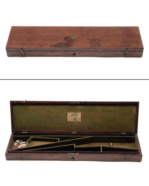 A MAHOGANY PERCUSSION SINGLE RIFLE CASE,