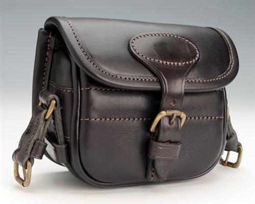 A NEW AND UNUSED HANDMADE LEATHER SUEDE-LINED SMALL CARTRIDGE BAG,
