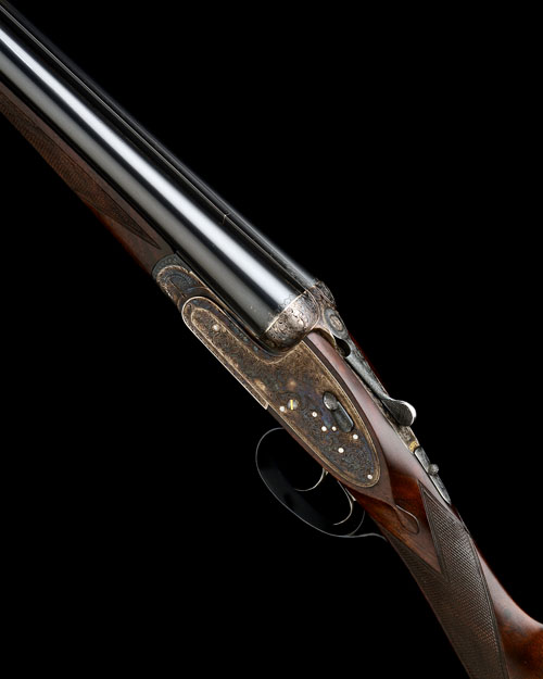 27in. nitro chopperlump barrels, the tubes engraved 'PEDRO ARRIZABALAGA EIBAR SPAIN' and the rib engraved 'ESPECIALLY MADE FOR J. ROBERTS & SON. KING ST. LONDON.', 2 3/4in. chambers, bored approx. 1/4 and 1/2 choke, treble-grip action with hidden third bite, removable striker discs, automatic safety with gold-inlaid 'SAFE' detail, Holland & Holland style self-opening system and hand-detachable lockplates, gold-inlaid cocking-indicators, rolled-edge triggerguard, articulated front trigger, bold scroll engraving, retaining virtually full original colour-hardening and finish, 15in. stock including 3/8in. extension, weight 6lb. 2oz.