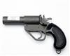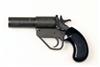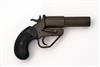 A 1in. SIGNAL PISTOL SIGNED A. UBERTI, serial no. 2150, recent, iron construction, break open 5 1/4in. barrel, phosphated finish and chequered plastic grips