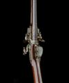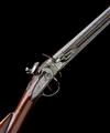 circa 1780, with browned two-stage over-under 36 1/2in. barrels banded at the intersection, the rifle barrel with dove-tailed bead fore-sight and standing notch rear-sight at breech, the shotgun barrel with applied bead fore-sight set in a silvered star-burst ground, both top-flats signed 'OAKES & SEDDON' in script followed by 'LONDON' in block letters, London proofs, twin engraved ball-bands at breech bisected by an engraved band of rope-twist, the breech sides with applied bevel-edged front half 'locks' retaining the frizzens, roller bearing frizzen springs and signed 'OAKES', the bevel-edged, back-action, scroll engraved lock on the rear right side engaging each frizzen when the barrels turned through 180 degrees, floral scroll engraved top-tang, walnut handrail 'banana' butt-stock carved with a border and shell around the top-tang, iron heel-plated, the stepped spur engraved with a border and a shot game-bird, the left hand side inlet with fine silver wire scrolls at head, rolled edge florally engraved trigger-guard bow and bottom tang, set trigger, no provision for fore-end and side-mounted bone-tipped wood ramrod