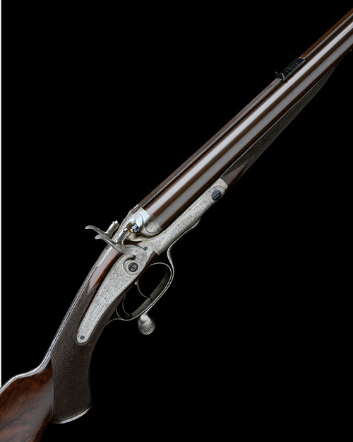 A .500 (3 1/4IN.) BLACK POWDER EXPRESS ROTARY-UNDERLEVER DOUBLE-BARRELLED HAMMER RIFLE, serial no. 11385,
