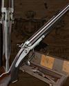 28in. bold twist barrels with raised, partially matted rib, open sights and two folding leaf sights with white metal inlaid sight lines and marked for 50 / 150, 200 and 250 yards, ramped bead fore-sight, the tubes engraved 'HOLLAND & HOLLAND. 98. NEW BOND STREET. LONDON. WINNER OF ALL THE "FIELD" RIFLE TRIALS. LONDON.', treble-grip action with Jones patent rotary underlever, elongated top strap, carved percussion fences with replacement nipples, rebounding back-action locks with dolphin hammers, fine acanthus scroll engraving, the left side of the action bar engraved 'CHARGE 5 DRAMS. CASE 3 1/4 INCHES', brushed bright finish overall, 14 3/4in. highly-figured pistolgrip stock with cheekpiece, engraved steel pistolgrip-cap, sling eyes and including 1in. rubber recoil pad, the pistolgrip wood with small stamp 'T. ADSETT GUILDFORD', fore-end with small insert repair, in its leather case with original trade and charges labels and additional T. Adsett & Son trade label, the lid outer marked 'R.P.R.G. Durham L.I.'