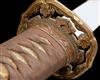 with 27 1/4in. hatchet-point blade, slightly swollen at the tip, silver 'habaki', pierced brass tsuba of General Officer quality (traces of gilding), cotton-wrapped hilt, complete with its brass-mounted, brown-painted 'saya'