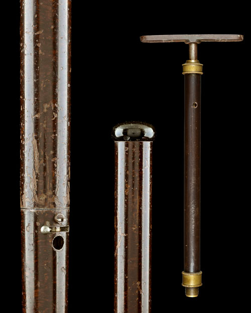 A 54-BORE SMOOTH-BORE PNEUMATIC AIR-CANE, UNSIGNED, WITH 140-BORE RIFLED BARREL INSERT, no visible serial number,