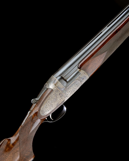Provenance: The makers have kindly confirmed that whilst there is no record of this gun in their records, the engraving looks correct to what was being produced in the Greener factory between 1933 and 1954. The gun could possibly have been bought in as a 'barrelled action in the white' which might have been finished by them but there is no record as such.