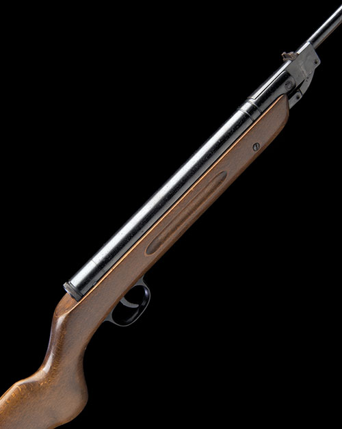circa 1951, with blued, sighted 19 3/4in. barrel, plain blued air-chamber, beech half-stock with smooth semi-pistol grip, ribbed end to butt, finger-grooves to fore-end, the whole retaining much original finish