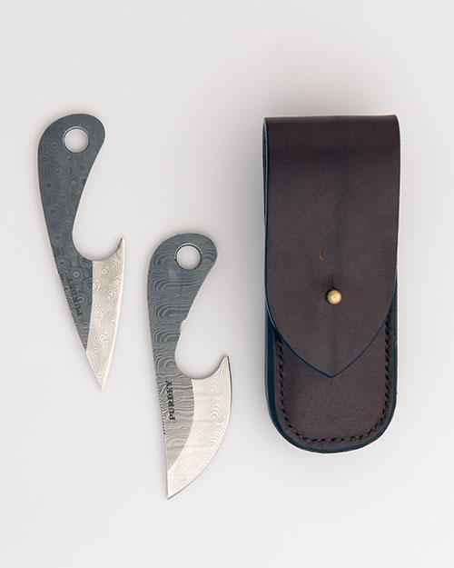 A NEW AND UNUSED PAIR OF DAMASCUS SKINNING KNIVES,
