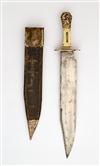 A LARGE WHITE-METAL MOUNTED BOWIE-KNIFE WITH SCABBARD,