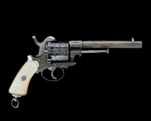 A 12mm PINFIRE SIX-SHOT ENGRAVED DOUBLE-ACTION REVOLVER, UNSIGNED, MODEL 'LEFAUCHEUX PATENT', no visible serial number.
