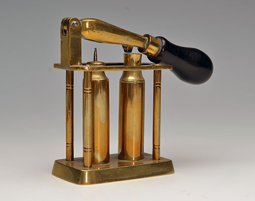 G. & J.W. HAWKSLEY A BRASS 16-BORE TWIN PILLAR RE-CAPPER AND DE-CAPPER WITH FRAME SUPPORT,