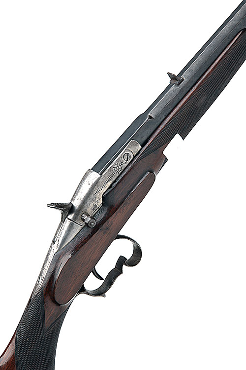 BELGIAN 9MM FLOBERT SINGLE-BARRELLED FLIP-UP BREECH GARDEN GUN, N.V.S.N., 24 1/2in. octagonal barrel, blade fore-sight with staining notch rear sight, 13 3/4in. pistolgrip stock including buttplate, push-button release stock