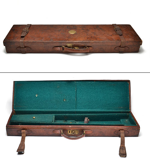 A SINGLE LEATHER GUNCASE WITH PROVISION FOR TWO SETS OF BARRELS,