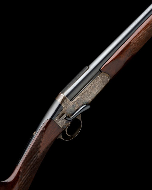 AN UNUSUAL 1934 PATENT 12-BORE SELF-OPENING SINGLE-BARRELLED SIDELEVER HAMMERLESS SHOTGUN, serial no. 581,