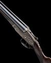 25in. nitro chopperlump barrels with matt Churchill-rib, 2 3/4in. chambers, bored approx. true cyl. and imp. cyl. choke, removable striker discs, automatic safety, hand-detachable lockplates, gold-inlaid cocking-indicators, articulated front trigger, rolled-edge triggerguard, fully engraved with acanthus scroll and floral motifs, retaining much original colour-hardening and finish, 14in. stock including 1 1/4in. rubber recoil pad, weight 6lb. 6oz., in a leather leg of mutton case