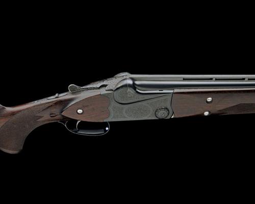 scroll-back action with hold-open toplever, side bolsters, automatic safety, non-selective single trigger, border and scroll engraving with central floral motifs, blued finish overall, 14 1/2in. pistolgrip stock with monte carlo comb, weight 7lb. 13oz. (29 1/2in. barrels) and 7lb. 12oz. (26 1/2in. barrels)