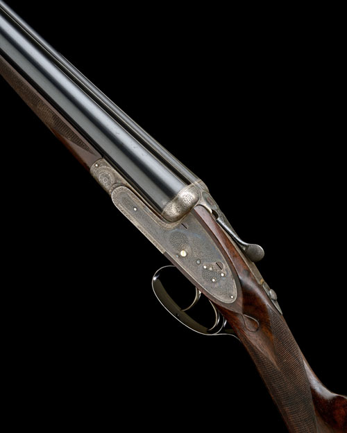 29in. nitro Whitworth-steel chopperlump barrels, rib engraved 'C. S. ROSSON & CO. RAMPANT HORSE STREET. NORWICH. MADE OF SIR JOSEPH WHITWORTH'S FLUID PRESSED STEEL', 2 1/2in. chambers, bored approx. 1/4 and 1/2 choke, removable striker discs, automatic safety with gold-inlaid 'SAFE' detail, gold-inlaid cocking-indicators, very fine floral bouquet and acanthus scroll engraving, retaining much original colour-hardening and finish, 14 5/8in. highly-figured stock, weight 6lb. 6oz., in its brass-cornered oak-lined leather case