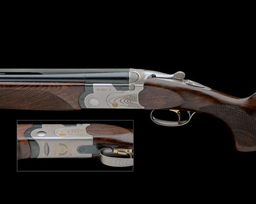 30in. nitro barrels with tapered ventilated matt top-rib, ventilated mid-rib, 3in. chambers, Optima multichokes (with spares), hold-open toplever, manual safety with integral barrel selector switch, adjustable gold-washed trigger, satin and bright finish with gold model designations, 14 3/8in. figured pistolgrip cast on stock with left hand palm swell, including wooden Beretta buttplate, weight 7lb. 8oz., in its universal case