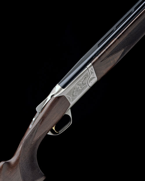 26in. nitro barrels with ventilated mid-rib and 6mm ventilated matt top-rib, 3in. chambers, multichokes (with spares), hold-open toplever, manual safety with integral barrel selector switch, gold-washed trigger, engraved with game scenes surrounded by acanthus scrollwork,14 1/2in. figured pistolgrip stock including buttplate, weight 6lb. 8oz., in its makers universal case with some accessories