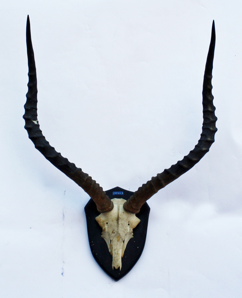 A SKULL MOUNT OF AN IMPALA, with horns approx. 25in., circumference approx. 5in., tip-tip approx. 17 1/2in.