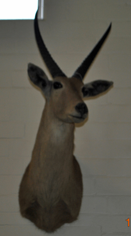 A CAPE & HEAD-MOUNT OF A REEDBUCK, with approx. 11in. horns, circumference approx. 5 1/2in., tip-tip approx. 10 3/4in.