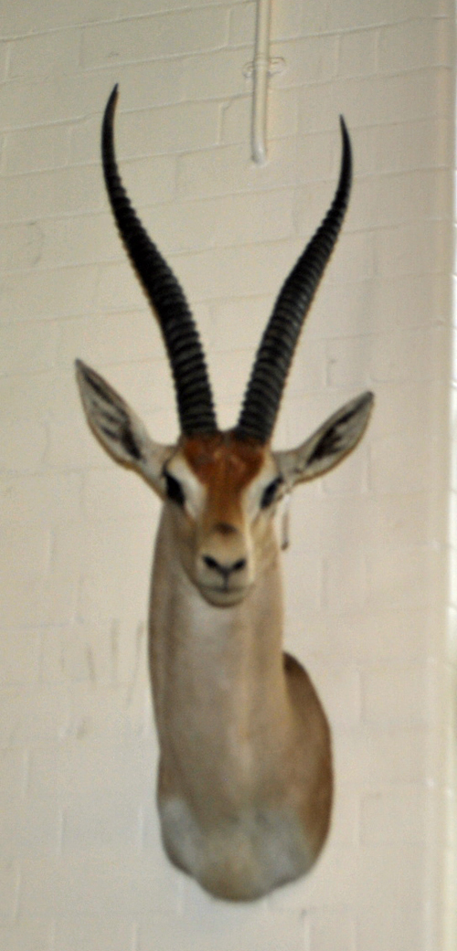 A CAPE & HEAD-MOUNT OF A 'GRANTS' GAZELLE, with horns approx. 24in., circumference approx. 6 1/4in., tip-tip approx. 11 1/2in.