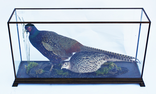 A BRACE OF FULL MOUNT MELANISTIC PHEASANTS,