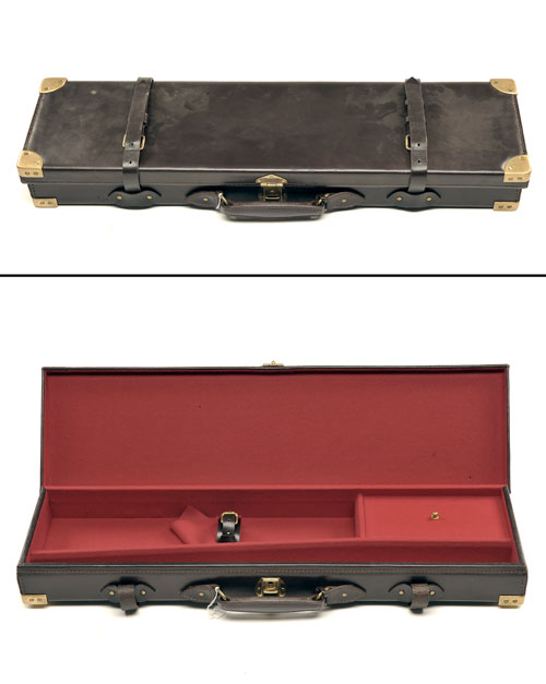 AN UNUSED BRASS-CORNERED SINGLE LEATHER GUNCASE,