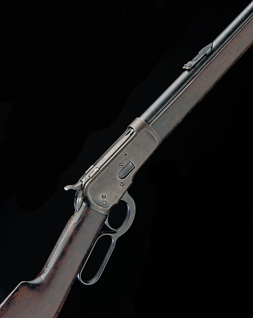 for 1913, with 24 1/4in. special definitive proof marked round barrel, the top marked 'W.R. PAPE. NEWCASTLE', dove-tailed fore-sight, two leaf folding rearsight, calibre designation to breech end, plain iron receiver, central hammer, the top-tang marked 'MODEL 1892 WINCHESTER TRADE MARK REG. IN U.S. PAT. OFF.', walnut straight-hand butt-stock with iron 'shotgun' heel-plate, plain walnut fore-end and full-length under-barrel magazine