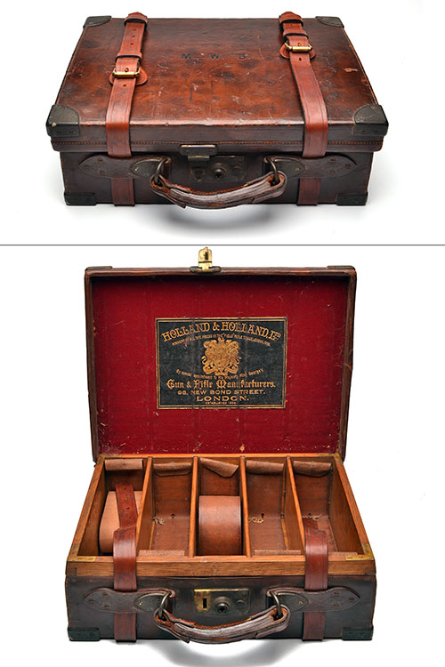 HOLLAND & HOLLAND LTD. A BRASS-CORNERED OAK AND LEATHER CARTRIDGE MAGAZINE,