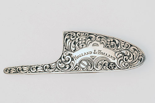 925 silver in the design of a 'Royal' sidelock, engraved with classic scroll, signed 'HOLLAND & HOLLAND'