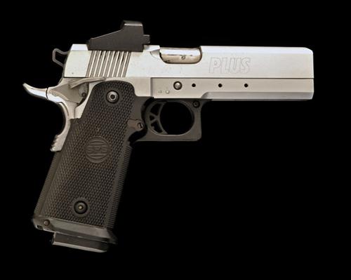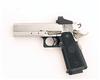 A .40 (S&W) SEMI-AUTOMATIC RACE-GUN SIGNED 'SPS', MODEL 'WORLD CUSTOM PLUS', serial no. 69-04-00018-99, Spanish, circa 1999, concealed stainless ported barrel, with sightless stainless steel slide mounted with a low-profile reflex sight (power source exhausted), skeletal hammer, stainless-steel frame with chequered polymer grip, extended beaver-tail grip-safe, additional ambidextrous safes and double-stack magazine