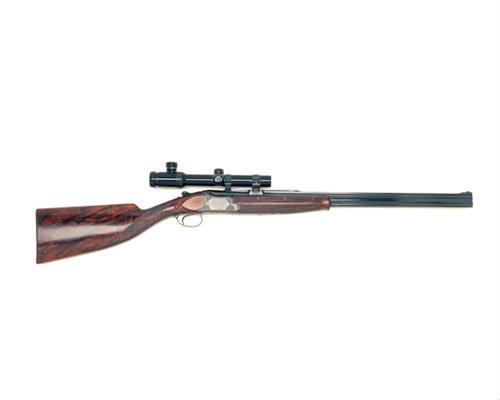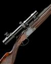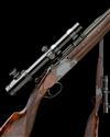 25 5/8in. (65cm) nitro barrels with stepped solid matt top-rib, open sights and ramped blade fore-sight, the breech end mounted with Zeiss Varipoint 1,1-4x24 T* telescopic sight in quickly-detachable mounts, three-piece fore-end, hold-open toplever, manual safety with integral barrel selector switch, border and acanthus scroll engraved action, signed 'D1' and 'A. CUISSET', retaining some original blued finish, 13 7/8in. boldly-figured roachbelly stock, weight 9lb. 1oz.