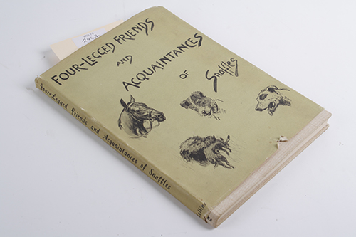 'FOUR-LEGGED FRIENDS AND ACQUAINTANCES OF SNAFFLES', by Snaffles, hard back with dust jacket , published by Collins of London 1951, "Glancing back through the years of my life," writes Snaffles, "I feel that I have been a very lucky fellow indeed to have acquired such memories, and the drawing of them has added, with compound interest, the pleasure these reflections have brought to me in reliving these incidents." Includes many of his favorite fox hunters, racers & chasers, scruffy hunting terriers and loyal hounds. (1)