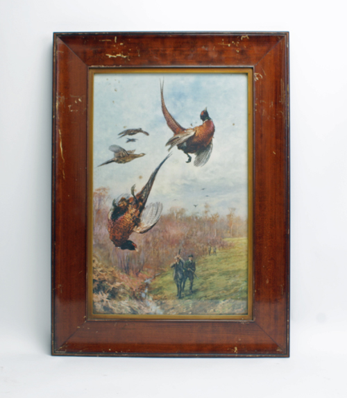 A VINTAGE THOMAS BLINKS COLOURED PHOTOGRAPHIC PRINT OF PHEASANT SHOOTING,