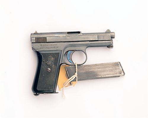 ** A 6.35mm (.25ACP) SEMI-AUTOMATIC PISTOL SIGNED MAUSER, MODEL 'M10', serial no. 87199, pre 1922, with exposed 3in. barrel, blued slide marked ''WAFFENFABRIK MAUSER A.G. OBERNDORF A.N. MAUSER'S PATENT', blued frame, the right hand side inscribed 'G. HUNTEMANN OSTERCAPPELN', chequered hard-rubber grips and much original finish (sideplate rubbed), complete with spare magazine