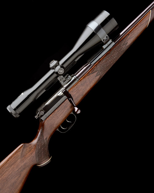 25 3/4in. nitro reproved barrel, ramp-mounted blade fore-sight, receiver mounted with a Zeiss Diatal-Z 8x56T* telescopic sight in quickly-detachable mounts, set triggers, pistolgrip stock with raised comb, cheekpiece, pistolgrip-cap, sling swivels, 14 1/2in. pull including buttplate