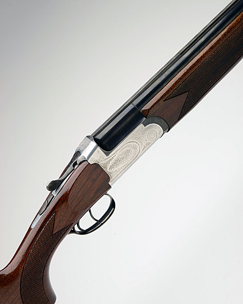 MIDLAND GUN CO. 12-BORE (3IN.) DOUBLE-TRIGGER OVER AND UNDER NON-EJECTOR, serial no. 74696, 27 1/2in. nitro barrels with ventilated mid-rib and 6mm ventilated matt top-rib, 3in. chambers, bored approx. true cyl. in both, hold-open toplever, manual safety, bouquet and scroll engraving, bright finish, 14 1/2in. pistolgrip stock