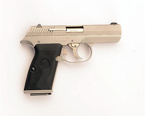 ** A BOXED 9mmK (.380 ACP) SEMI-AUTOMATIC POCKET-PISTOL SIGNED SITES, MODEL 'RESOLVER', serial no. R0269, with 3 1/4in. barrel, stainless steel sighted slide, hammerless stainless steel frame, double action trigger and soft plastic grips, COMPLETE WITH its manufactures abs plastic case
