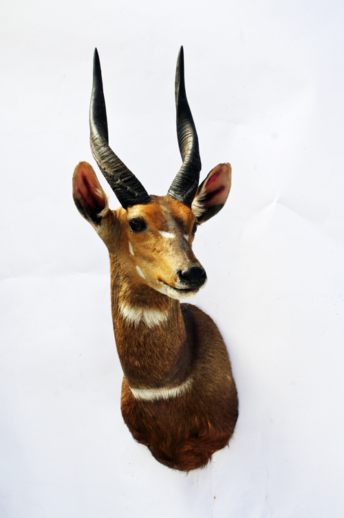 A CAPE AND HEAD MOUNT OF A BUSHBUCK, with horn approx. 14in., circumference approx. 6in., shot in Zimbabwe 2004
